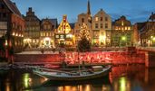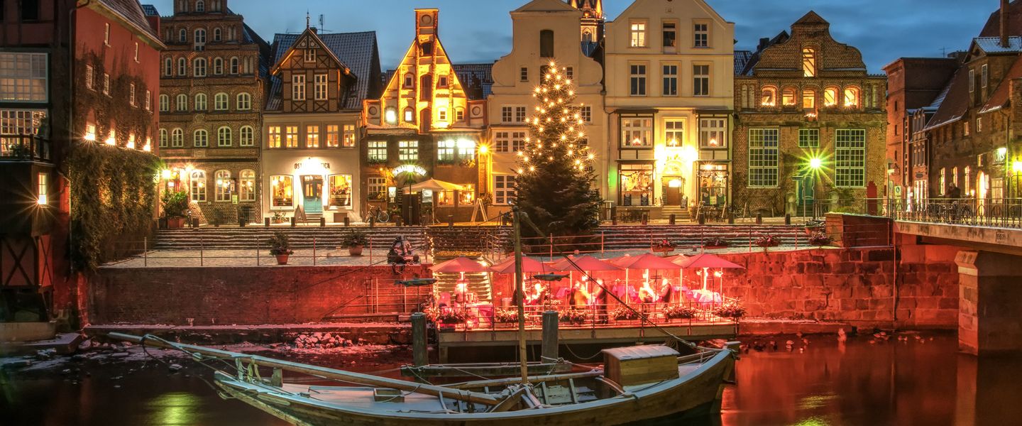 3. Tag: Im Winter kehrt traditionell etwas Ruhe in die Lüneburger Heide ein. Draußen ist es still, die weiten Heideflächen sind mit Frost und Schnee überzogen und verwandeln die Heide in ein glitzerndes Wintermärchen. Wussten Sie schon, dass Sie die berühmten Heidschnucken auch im Winter auf den Heideflächen treffen können? Im Gegensatz zu uns Menschen bekommen die Heidschnucken nämlich nicht so schnell kalte Füße. Nicht nur die Natur der Lüneburger Heide bezaubert im Winter ihre Gäste. Romantik pur erwartet Sie heute in der historischen Altstadt der Hansestadt Lüneburg. Der Duft nach Zimt und Glühwein lockt die Gäste und der Marktplatz erstrahlt in einem festlichen Lichtermeer, das die historischen Gebäude umrahmt und eine malerische Kulisse schafft. Sie erkunden die Salzstadt im weihnachtlichen Glanze bei einem Stadtrundgang. Ende der Tour ist auf dem wunderschönen Lüneburger Weihnachtsmarkt, wo Sie gemeinsam mit Ihrem Guide noch über die ein oder andere Anekdote schmunzeln werden – und neben einer leckeren Bratwurst noch einen köstlichen Glühwein verkosten können.