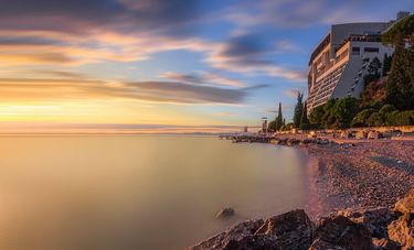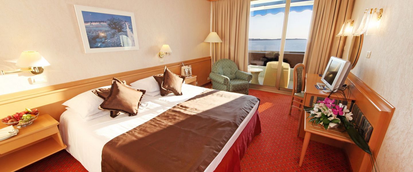 Das prestige Grand Hotel Bernardin liegt direkt am Meer, am beliebten Spazierweg zwischen Altstadt Piran und Portorož. Die Zimmer sind mit einem Balkon und Meerblick, SAT-TV mit Flatscreen, Minibar, Safe, Klimaanlage ausgestattet. Auch die Bademantelbenützung und gratis WiFi ist im Zimmerpreis inkludiert.