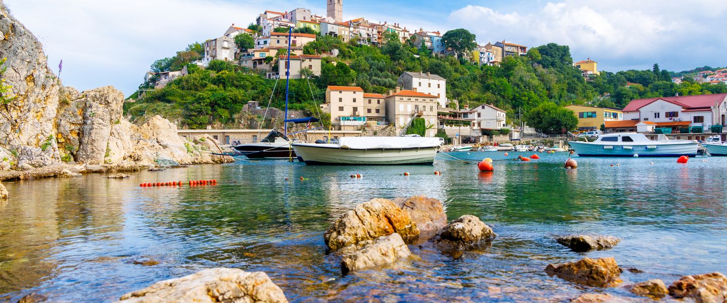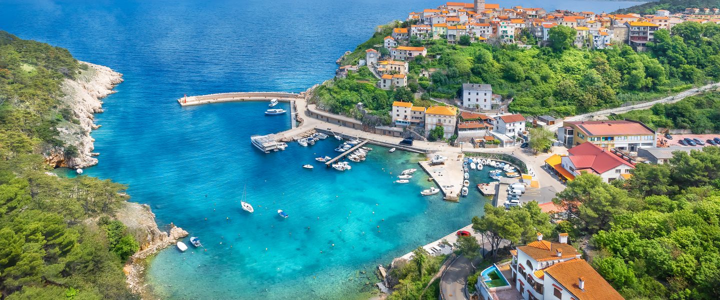 Die Insel Krk liegt in der Kvarner Bucht in Kroatien und ist durch eine Brücke mit dem Festland verbunden, was sie leicht erreichbar macht. Geografisch befindet sich die Insel in der Nähe der Städte Rijeka und Opatija, etwa 30 Kilometer von der kroatischen Küste entfernt. Die Lage in der Kvarner Bucht bietet eine Vielzahl von Möglichkeiten für Ausflüge zu benachbarten Inseln und Küstenorten. Die Insel Krk ist von einer malerischen Küstenlinie umgeben, die von zahlreichen Buchten und Stränden geprägt ist, die sich ideal für Schwimmer und Sonnenanbeter eignen. Die Kombination aus atemberaubenden Ausblicken, reicher Natur und der Möglichkeit, die kroatische Kultur hautnah zu erleben, macht die Insel Krk zu einem unvergesslichen Erlebnis für alle, die diese einzigartige Destination entdecken möchten.