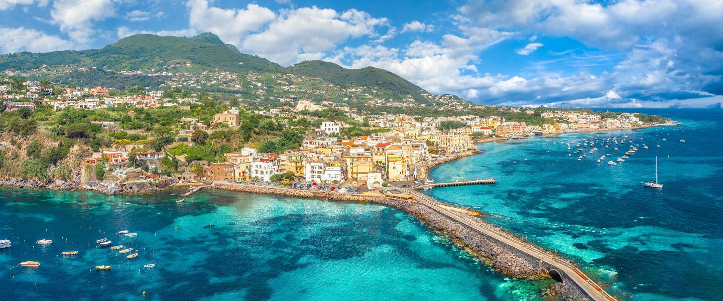 Ischia liegt im Tyrrhenischen Meer, etwa 30 Kilometer von Neapel entfernt. Geografisch ist die Insel die größte der Phlegräischen Inseln und erstreckt sich über eine Fläche von etwa 46 Quadratkilometern. Die Anreise erfolgt in der Regel mit der Fähre oder dem Tragflächenboot von Neapel oder Pozzuoli, wobei die Überfahrt nur etwa 30 bis 60 Minuten dauert. Ischia ist von einer beeindruckenden Küstenlinie umgeben, die von Buchten, Stränden und steilen Klippen geprägt ist. Die zentrale Lage im Golf von Neapel macht Ischia zu einem idealen Ausgangspunkt für Ausflüge zu anderen nahegelegenen Zielen, wie Capri und der Amalfiküste. Die Kombination aus der natürlichen Schönheit, der kulturellen Vielfalt und den vielfältigen Freizeitmöglichkeiten macht Ischia zu einem bereichernden Erlebnis für alle, die die Faszination dieser einzigartigen italienischen Insel entdecken möchten.