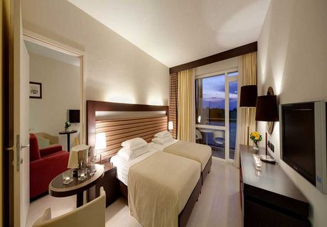 Ideal für Familien und Kinder! Die Innenräume sind mit dem rustikalen, dörflichen Stil Istriens ausgestattet und überall finden Sie Lavendel und Olivenbäume. Die Lobby sieht sogar aus wie ein kleiner Dorfplatz, mit der Rezeption auf der einen und einer Bar auf der anderen Seite.