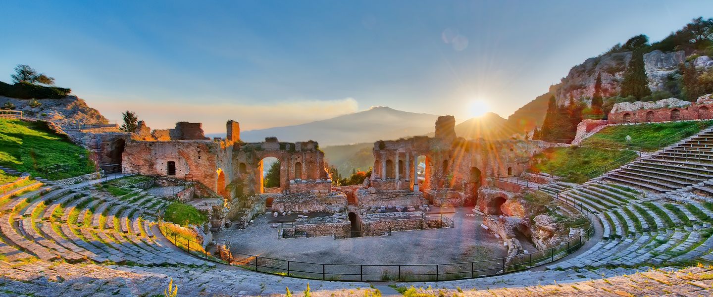 Der heutige Tag steht ganz im Zeichen des majestätischen Ätnas. Ihre aufregende Auffahrt auf den 3.340 m hohen Vulkan beginnt, und Sie werden die verschiedenen Vegetationsstufen bewundern, die sich je nach Höhenlage verändern. Von Orangen- und Zitronenbäumen bis hin zu dichten Wäldern und der beeindruckenden Gipfelregion, die wie eine schwarze, glänzende Wüste wirkt. Vom Rifugio Sapienza auf 1.900 m Höhe genießen Sie einen atemberaubenden Blick über die Ostküste Siziliens. Zur Mittagszeit machen Sie bei einem landestypischen Bauernhof Halt, um ein lokales Mittagessen inkl. Wasser und lokalem Wein zu genießen. Am Nachmittag geht es weiter nach Taormina, wo Sie durch die malerische Altstadt bummeln können, die hoch über dem Meer thront und vom Ätna überragt wird.