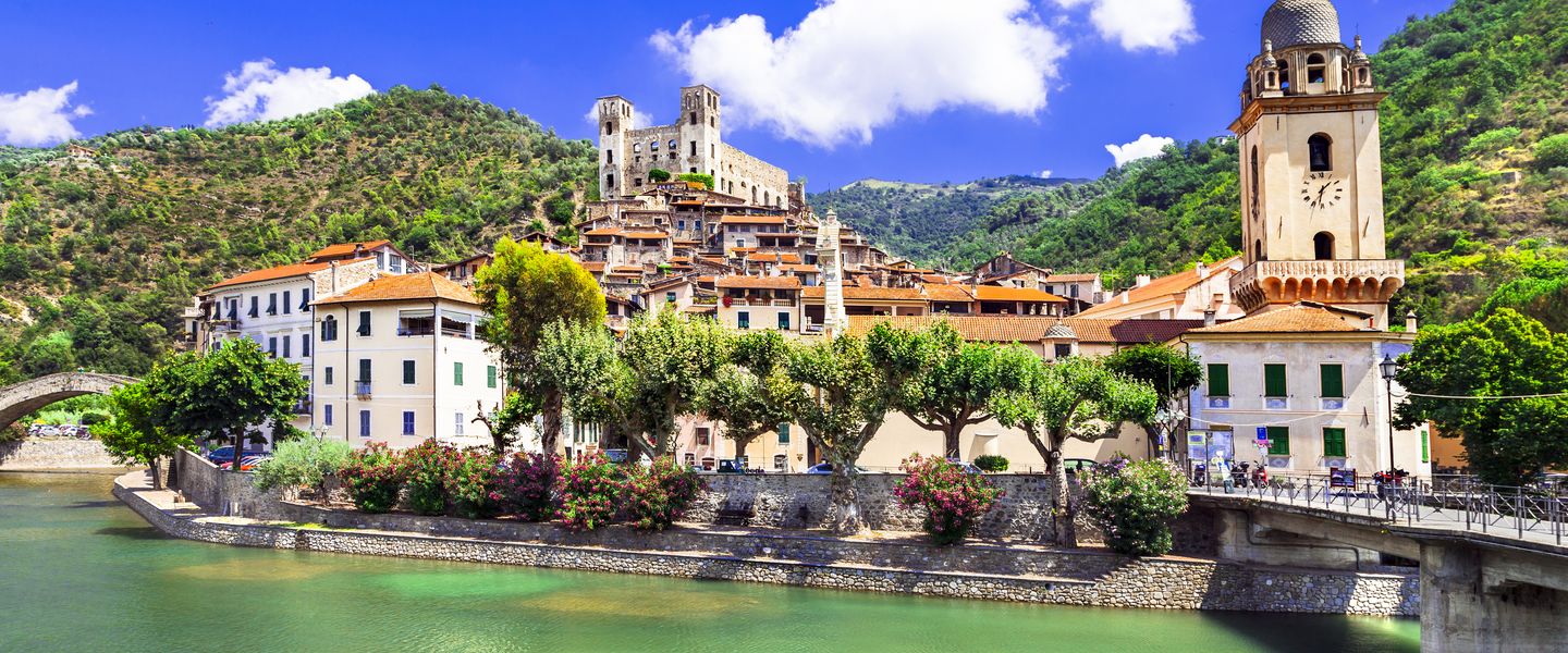 Dolceacqua ist eine malerische Gemeinde in Italien, die in der Region Ligurien liegt, in der Provinz Imperia. Sie befindet sich im Hinterland der Riviera di Ponente, etwa 20 Kilometer nordwestlich von Sanremo. Dolceacqua ist berühmt für ihre beeindruckende mittelalterliche Architektur, insbesondere die charakteristische Brücke "Ponte Vecchio", die das Dorf mit der anderen Seite des Flusses Nervia verbindet. Die Stadt ist auch bekannt für ihre Weinproduktion, insbesondere den lokalen Rossese-Wein. Historisch gesehen hat Dolceacqua eine reiche Geschichte, die bis in die römische Zeit zurückreicht, und war im Mittelalter ein strategischer Punkt für den Handel und die Verteidigung.