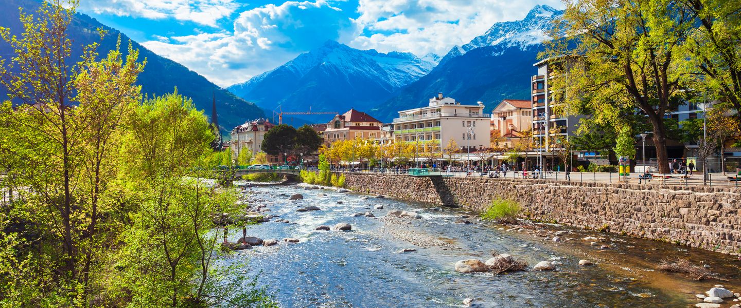 Meran ist eine malerische Stadt in Italien, die sich in der autonomen Provinz Bozen in der Region Trentino-Südtirol befindet. Die Stadt liegt im Etschtal, umgeben von beeindruckenden Bergen und ist bekannt für ihr mildes Klima, das es zu einem beliebten Kurort macht. Meran ist berühmt für seine Thermalbäder, die seit dem 19. Jahrhundert für ihre heilenden Eigenschaften geschätzt werden. Die Stadt hat eine reiche Geschichte, die bis in die römische Zeit zurückreicht, und war im Mittelalter ein wichtiger Handelsplatz. Meran ist auch für seine wunderschöne Altstadt, die von einer Mischung aus italienischer und deutscher Architektur geprägt ist, bekannt.