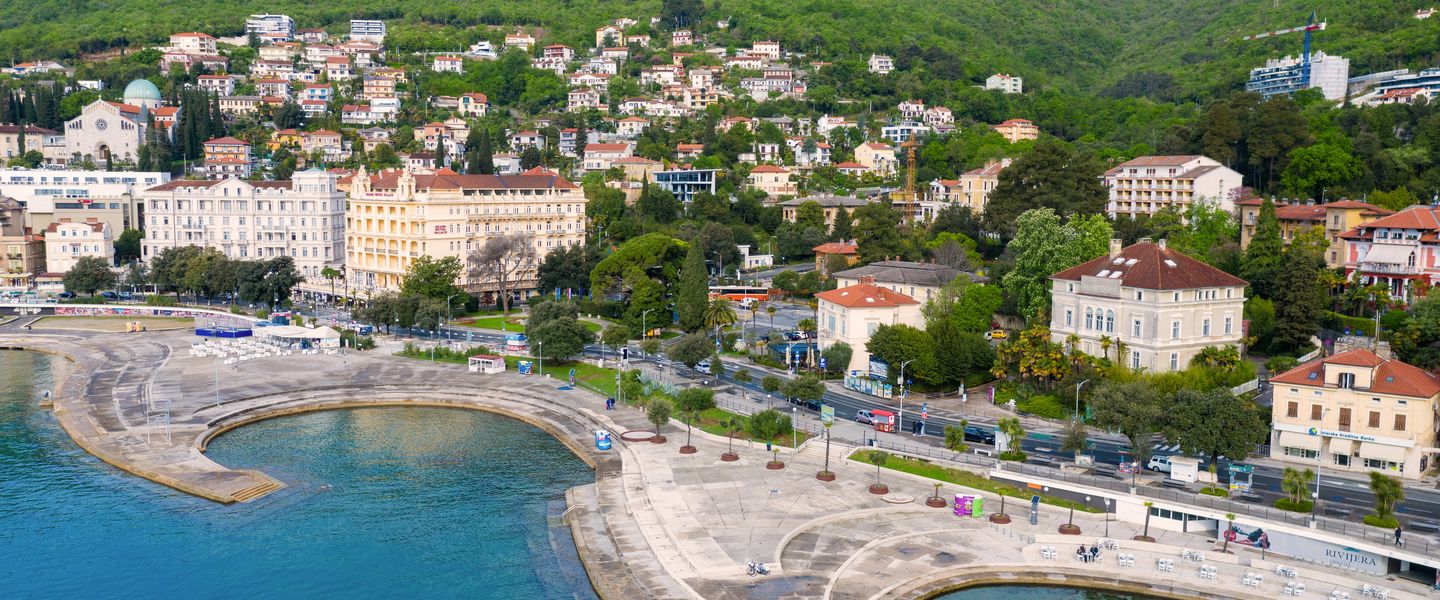 Opatija ist eine Stadt in Kroatien, die an der Kvarner Bucht in der Region Primorje-Gorski Kotar liegt. Sie ist bekannt für ihre elegante Architektur, die von der Zeit des Habsburgerreiches geprägt ist, und gilt als einer der ältesten und bekanntesten Kurorte an der Adriaküste. Opatija ist berühmt für ihre wunderschöne Uferpromenade, die Lungomare, die sich über mehrere Kilometer entlang der Küste erstreckt und atemberaubende Ausblicke auf das Meer bietet. Die Stadt hat eine reiche Geschichte, die im 19. Jahrhundert begann, als sie zu einem beliebten Ziel für wohlhabende Touristen und Aristokraten wurde, die die heilenden Eigenschaften des mediterranen Klimas und der Umgebung suchten.