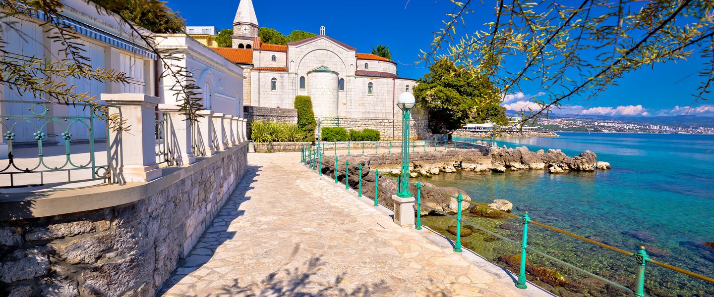 Zu den touristischen Schwerpunkten in Opatija gehört die Lungomare, die berühmte Uferpromenade, die sich über 12 Kilometer entlang der Küste erstreckt und atemberaubende Ausblicke auf das Meer und die umliegenden Berge bietet. Die Promenade ist gesäumt von historischen Villen, Parks und Stränden, die zum Flanieren und Entspannen einladen.